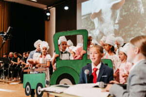 Die zahlreichen Besucher:innen waren begeistert über die tolle Zusammenarbeit von Musikverein und Volksschule, für diese es auch ein kreatives Schulprojekt darstellte. Die Zeit und Kraft, die die Lehrkräfte und Rupert Hörbst gemeinsam in die Vorbereitung gesteckt haben, hat sich auf alle Fälle gelohnt – die Kinder wurden sichtbar in ihrer musikalischen und darstellerischen Entwicklung gefördert. Somit ein rundum gelungenes Konzert!