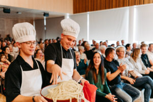 Am 19. Oktober drehte sich im s‘Zentrum 4720 in Kallham alles um österreichische Kulinarik, Theater und Musik. Denn wir führten gemeinsam mit der Volksschule Pötting „Die kleine Kochshow“ auf. Dabei handelt es sich um ein Musikvermittlungsprojekt von Rupert Hörbst (Text) und Siegmund Andraschek (Musik), bei dem der kulinarische Besuch im fiktiven Restaurant „zum kleinen Koch“ musikalisch dargestellt wird. Die Kinder übernahmen den Gesang und die Darstellung, es führten sogar 2 Schülerinnen der 4. Klasse als Besucherinnen des Restaurants durch den Abend und der Musikverein fungierte als Orchester und übernahm ebenfalls Teile von Gesang und Darstellung.