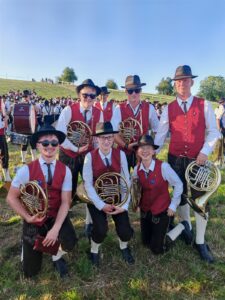 In diesem Jahr stellten wir uns bei der Marschwertung einer neuen Herausforderung: nämlich in der Stufe D+ anzutreten, das bedeutet nach dem traditionellen Pflichtteil, ein Showelement vorzuführen. Mit dem Marsch „Rechts schaut“ marschierten wir den ersten Part und mit dem „Erzherzog Karl“ marschierten wir den Showteil. Dieser bestand aus einem Herz, das wir zuerst darstellten und dann wieder geschickt auflösten und in Grundstellung zurückmarschierten. Vielen Dank an dieser Stelle an unseren Stabführer Patrick Kaufmann für die Probenarbeit und intensive Vorbereitung. Das Proben hat sich auf alle Fälle ausgezahlt: wir durften uns am Ende über 90,86 Punkte uns somit eine Auszeichnung freuen!